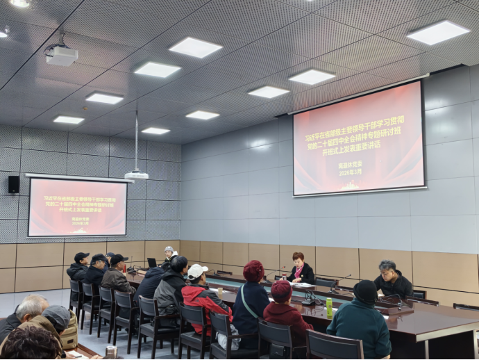 首先,孟雪莲带领党员专题学习习近平总书记在省部级主要领导干部学习贯彻党的二十届四中全会精神专题研讨班开班式上的重要讲话,结合离退休党员实际解读核心要义与实践要求,引导老党员坚定政治信仰、赓续红色血脉,切实把学习成果转化为践行 “两个确立”“两个维护” 的实际行动。